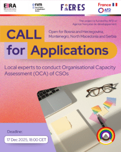 ERIM and ERA are announcing a call for applications to recruit local experts to conduct Organisational Capacity Assessment (OCA) of LGBTQIA+ CSOs based in Bosnia and Herzegovina, Montenegro, North Macedonia and Serbia.